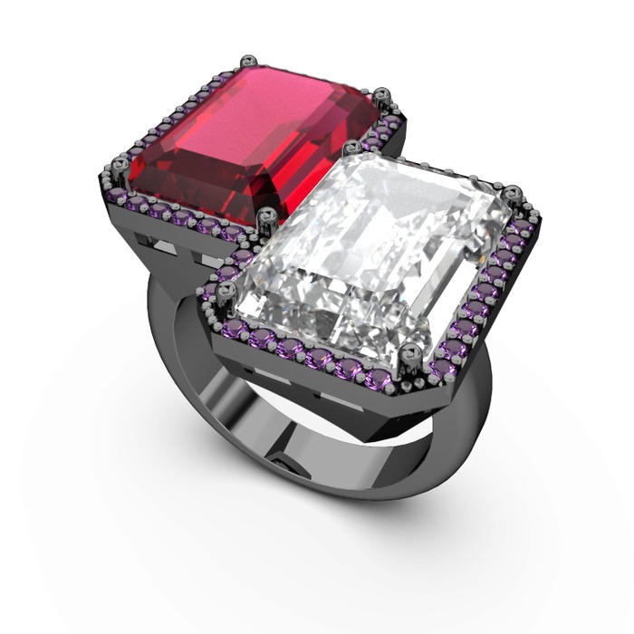 Rodolit garnet, beyaz zirkon ve ametist 925 ayar siyah rodyum kaplama gümüş yüzük
