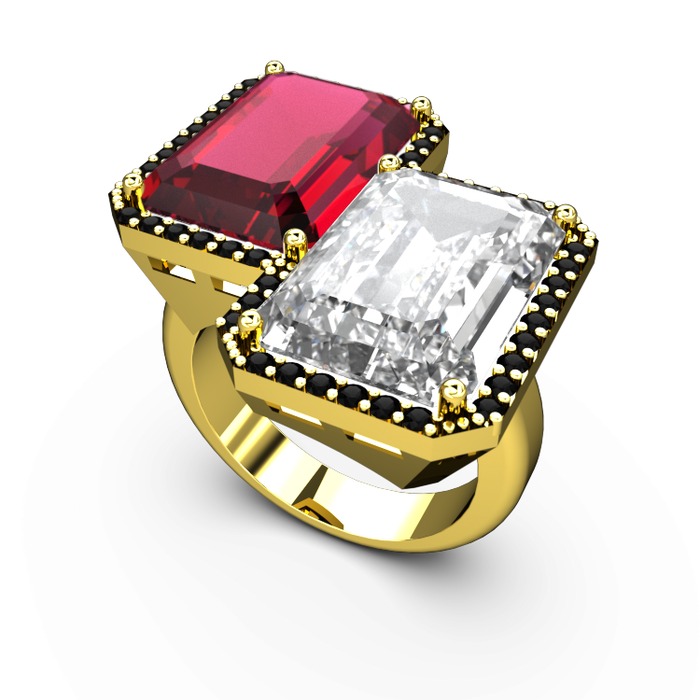 Rodolit garnet, beyaz zirkon ve siyah zirkon 8 ayar altın yüzük