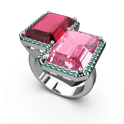 Rodolit garnet, pembe kuvars ve yeşil kuvars 8 ayar beyaz altın yüzük