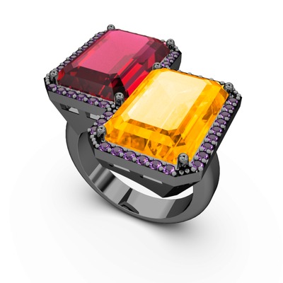Rodolit garnet, sitrin ve ametist 925 ayar siyah rodyum kaplama gümüş yüzük