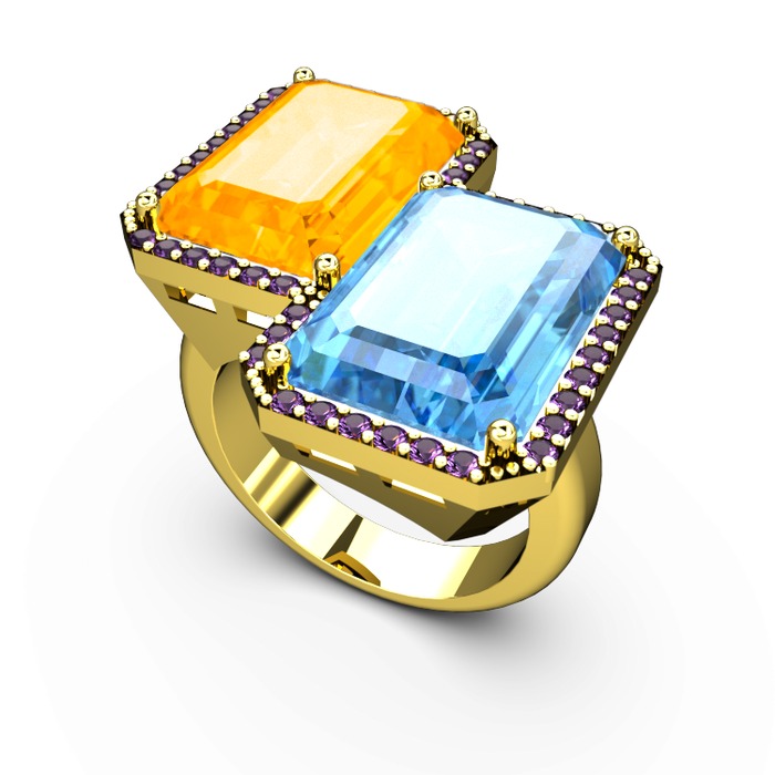 Sitrin, akuamarin ve ametist 8 ayar altın yüzük
