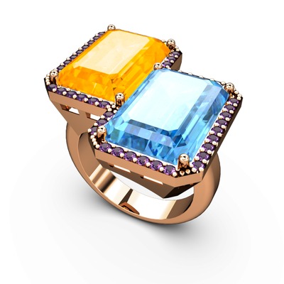 Sitrin, akuamarin ve ametist 925 ayar rose altın kaplama gümüş yüzük