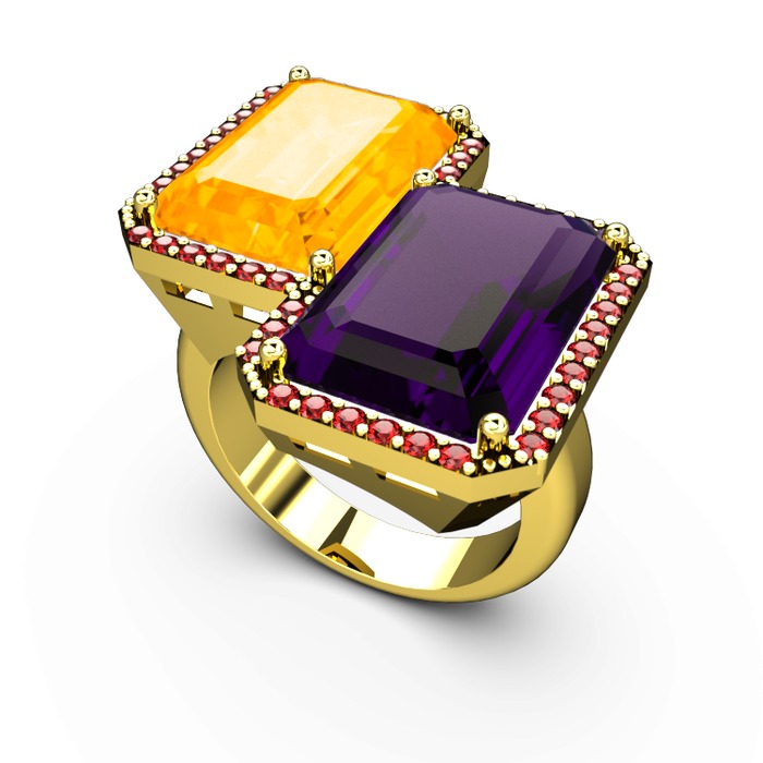 Sitrin, ametist ve garnet 8 ayar altın yüzük