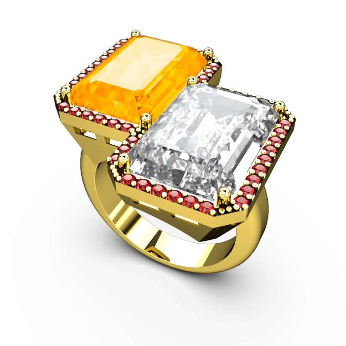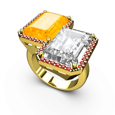 Sitrin, beyaz zirkon ve garnet 18 ayar altın yüzük