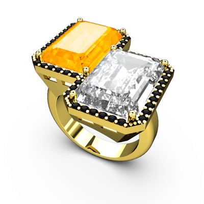 Sitrin, beyaz zirkon ve siyah zirkon 8 ayar altın yüzük