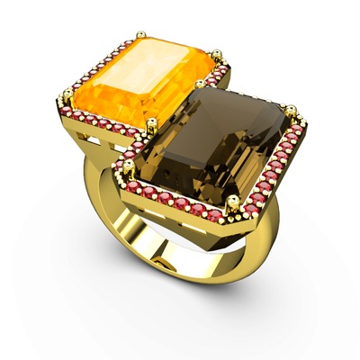 Sitrin, dumanlı kuvars ve garnet 18 ayar altın yüzük