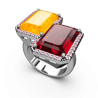 Sitrin, garnet ve pembe kuvars 18 ayar beyaz altın yüzük