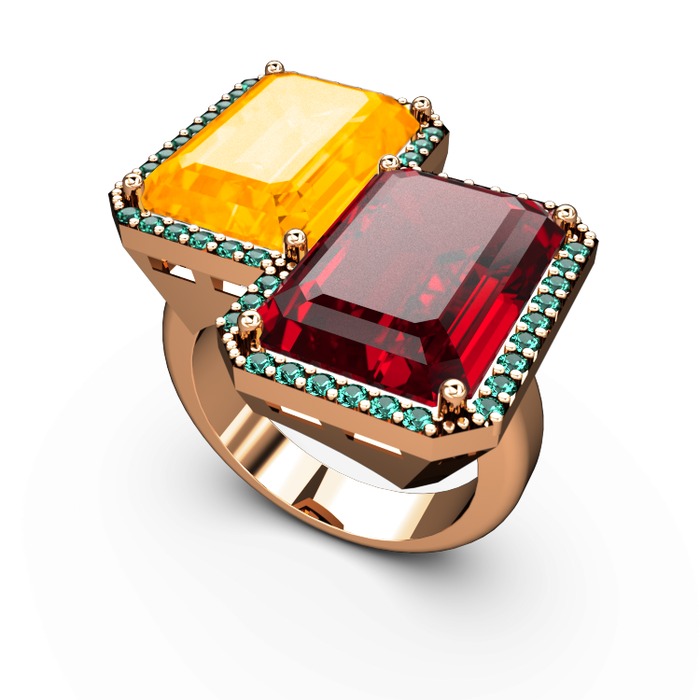 Sitrin, garnet ve yeşil kuvars 14 ayar rose altın yüzük