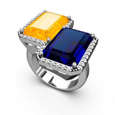 Sitrin, lab safir ve swarovski 18 ayar beyaz altın yüzük