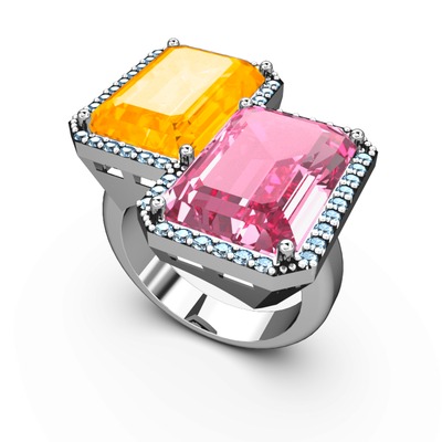 Sitrin, pembe kuvars ve akuamarin 14 ayar beyaz altın yüzük