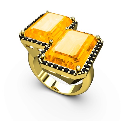 Sitrin ve siyah zirkon 8 ayar altın yüzük