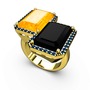 Sitrin, siyah zirkon ve lab safir 925 ayar altın kaplama gümüş yüzük