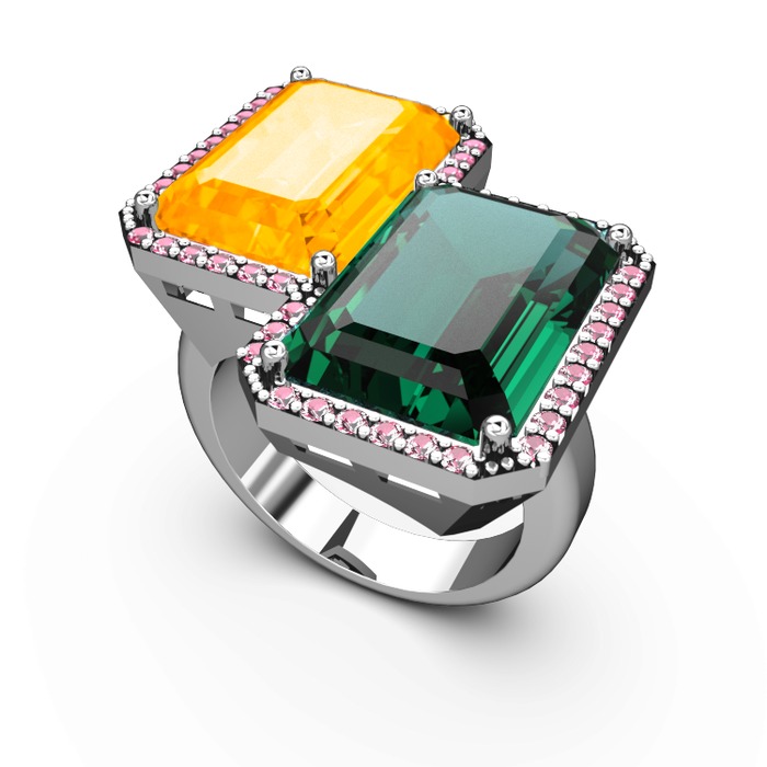 Sitrin, yeşil kuvars ve pembe kuvars 18 ayar beyaz altın yüzük