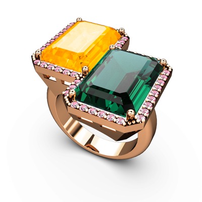 Sitrin, yeşil kuvars ve pembe kuvars 18 ayar rose altın yüzük