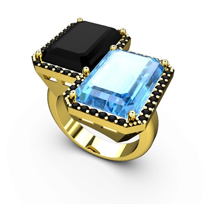 Siyah zirkon ve akuamarin 8 ayar altın yüzük