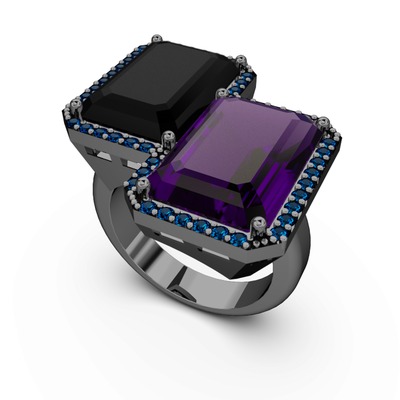 Siyah zirkon, ametist ve lab safir 925 ayar siyah rodyum kaplama gümüş yüzük