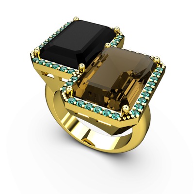 Siyah zirkon, dumanlı kuvars ve yeşil kuvars 925 ayar altın kaplama gümüş yüzük
