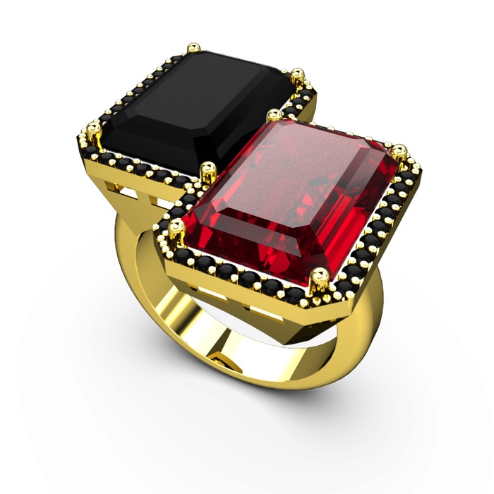 Siyah zirkon ve garnet 8 ayar altın yüzük