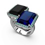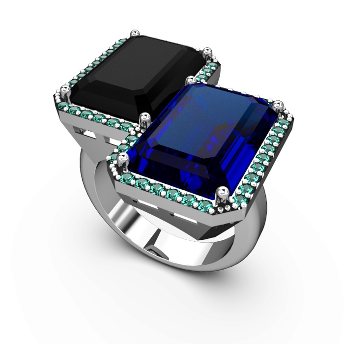 Siyah zirkon, lab safir ve yeşil kuvars 18 ayar beyaz altın yüzük