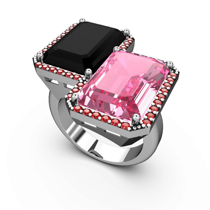 Siyah zirkon, pembe kuvars ve garnet 18 ayar beyaz altın yüzük