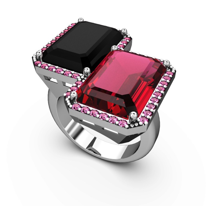 Siyah zirkon ve rodolit garnet 14 ayar beyaz altın yüzük