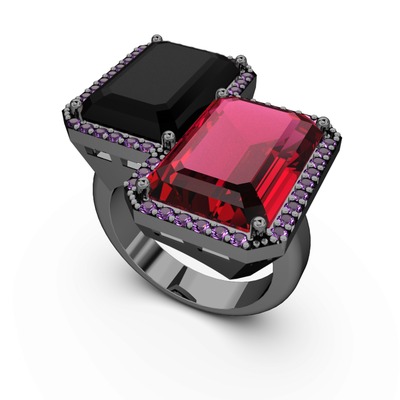 Siyah zirkon, rodolit garnet ve ametist 925 ayar siyah rodyum kaplama gümüş yüzük