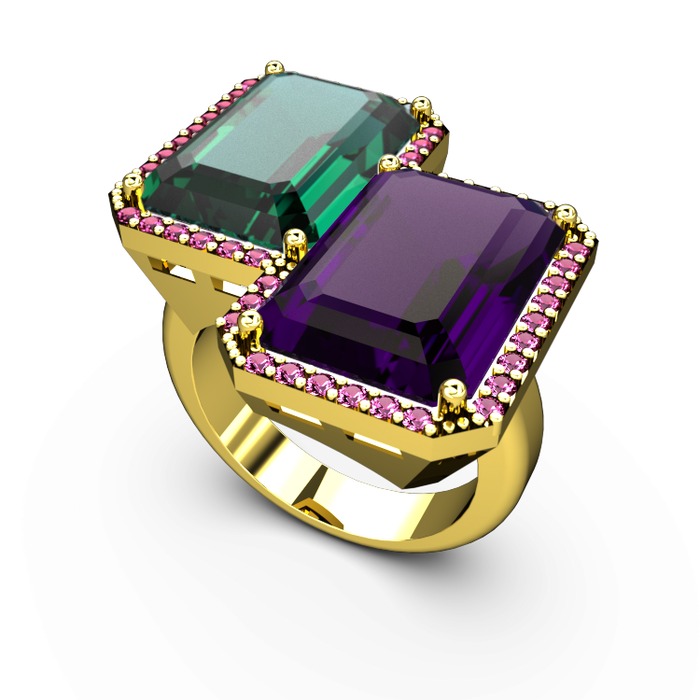 Yeşil kuvars, ametist ve rodolit garnet 18 ayar altın yüzük