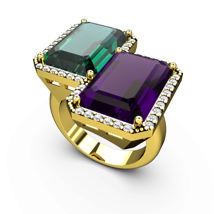 Yeşil kuvars, ametist ve swarovski 18 ayar altın yüzük