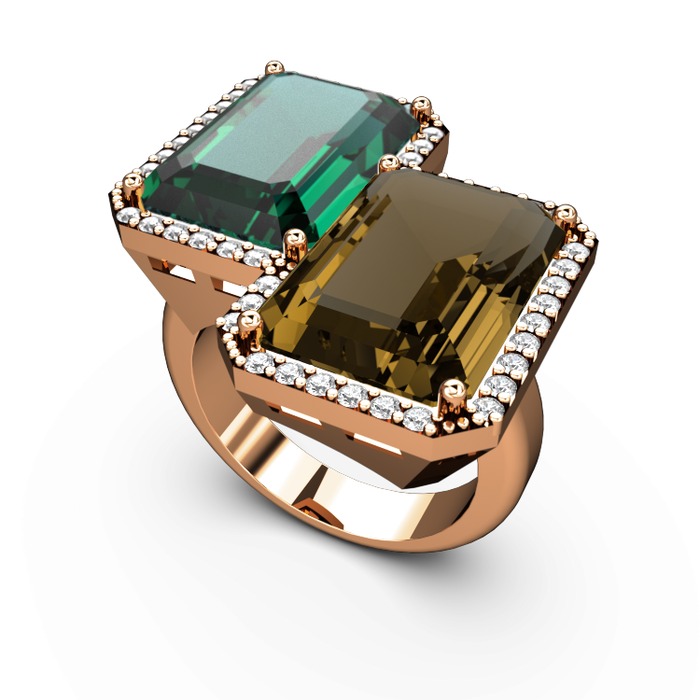 Yeşil kuvars, dumanlı kuvars ve swarovski 18 ayar rose altın yüzük