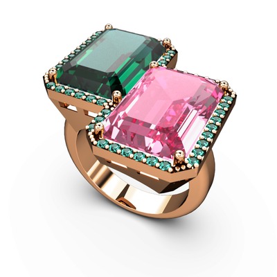 Yeşil kuvars ve pembe kuvars 14 ayar rose altın yüzük