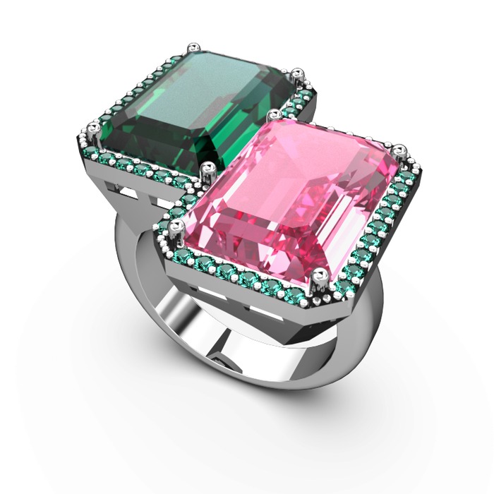 Yeşil kuvars ve pembe kuvars 18 ayar beyaz altın yüzük