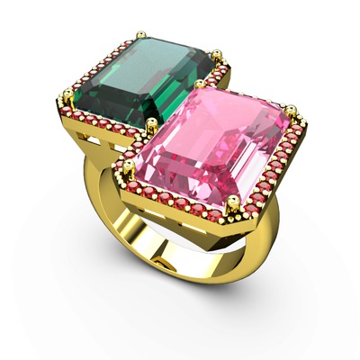 Yeşil kuvars, pembe kuvars ve garnet 8 ayar altın yüzük