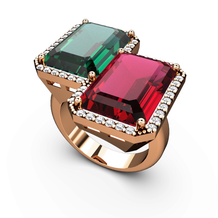 Yeşil kuvars, rodolit garnet ve swarovski 14 ayar rose altın yüzük