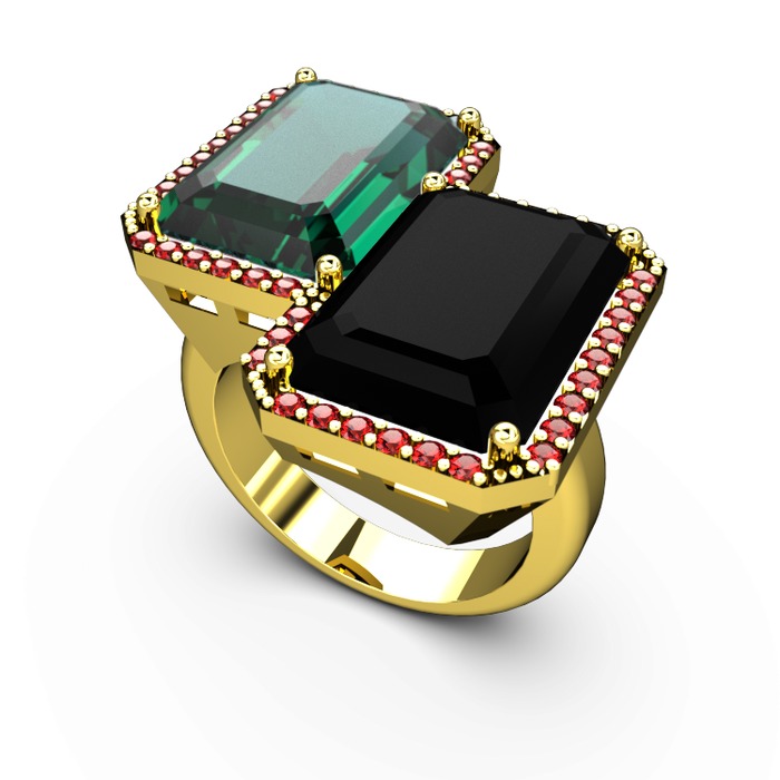 Yeşil kuvars, siyah zirkon ve garnet 8 ayar altın yüzük