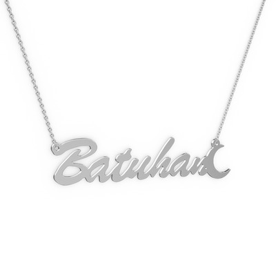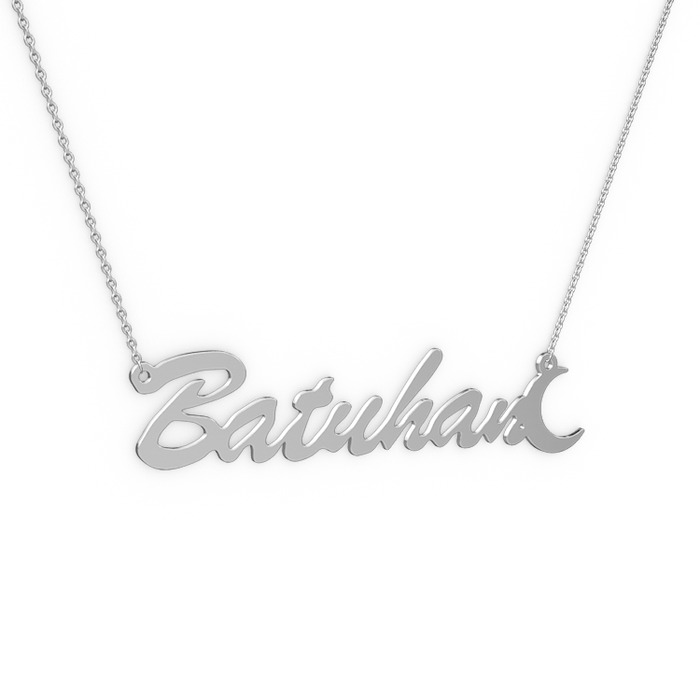 14 ayar beyaz altın kolye (7 karakterli el yazısı, 40 cm beyaz altın rolo zincir)