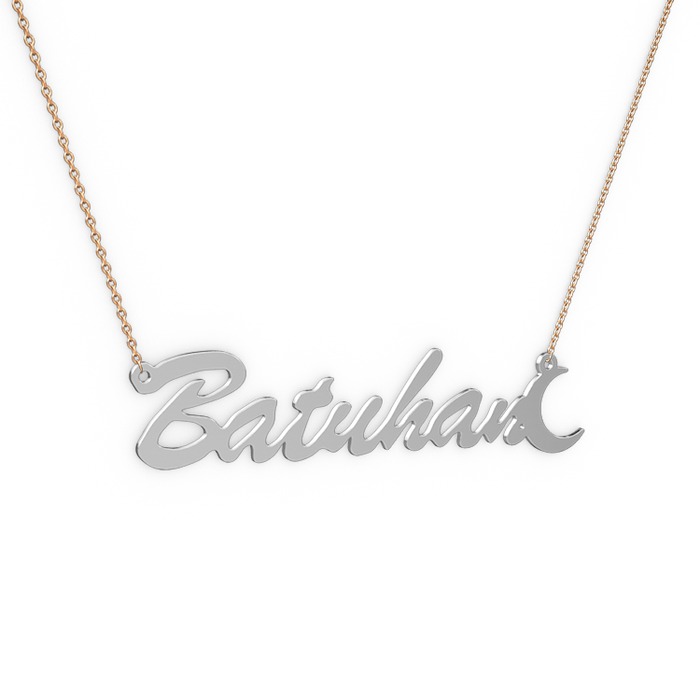 14 ayar beyaz altın kolye (7 karakterli el yazısı, 40 cm rose altın rolo zincir)