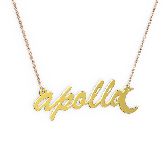 18 ayar altın kolye (6 karakterli el yazısı, 40 cm rose altın rolo zincir)