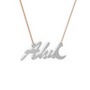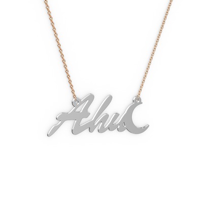 18 ayar beyaz altın kolye (3 karakterli el yazısı, 40 cm rose altın rolo zincir)