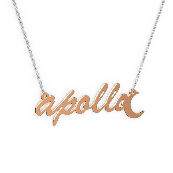 8 ayar rose altın kolye (6 karakterli el yazısı, 40 cm beyaz altın rolo zincir)