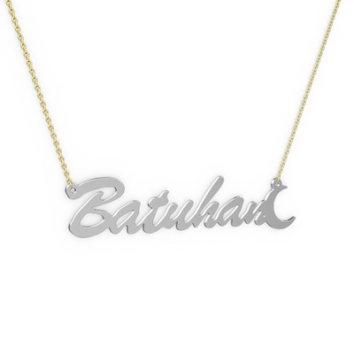 925 ayar gümüş kolye (7 karakterli el yazısı, 40 cm altın rolo zincir)