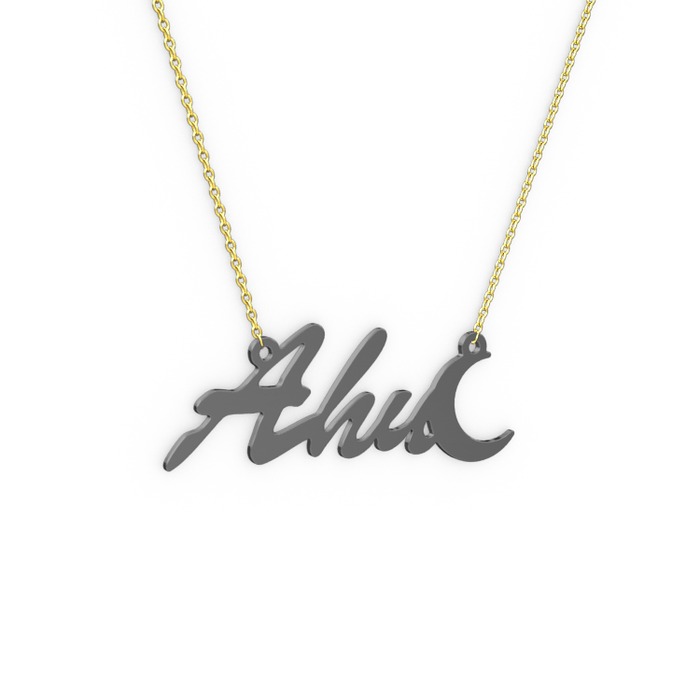 925 ayar siyah rodyum kaplama gümüş kolye (3 karakterli el yazısı, 40 cm altın rolo zincir)