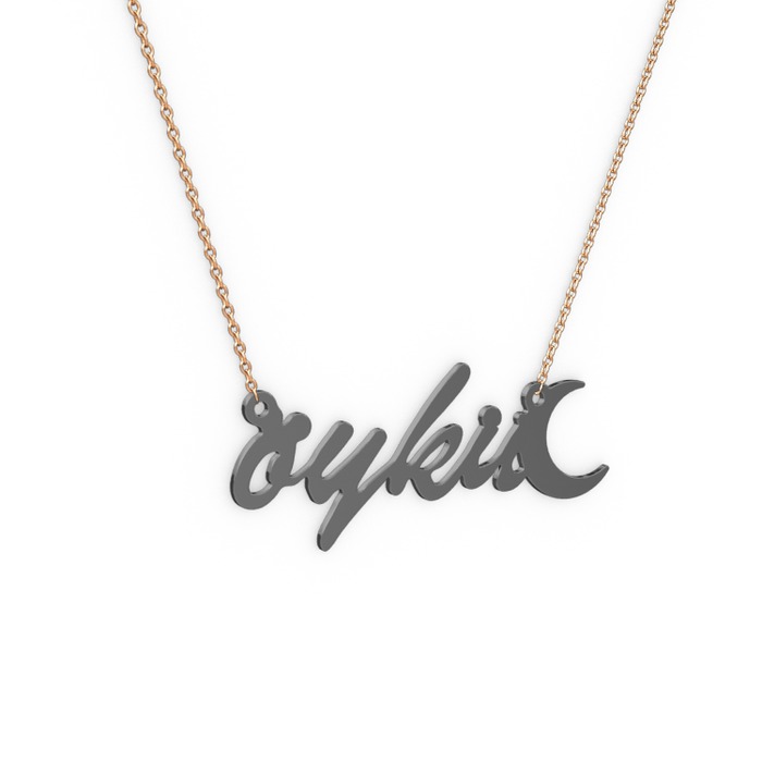 925 ayar siyah rodyum kaplama gümüş kolye (4 karakterli el yazısı, 40 cm gümüş rolo zincir)