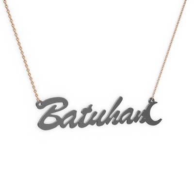 925 ayar siyah rodyum kaplama gümüş kolye (7 karakterli el yazısı, 40 cm rose altın rolo zincir)