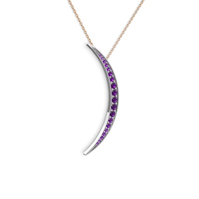 Ametist 18 ayar beyaz altın kolye (40 cm gümüş rolo zincir)