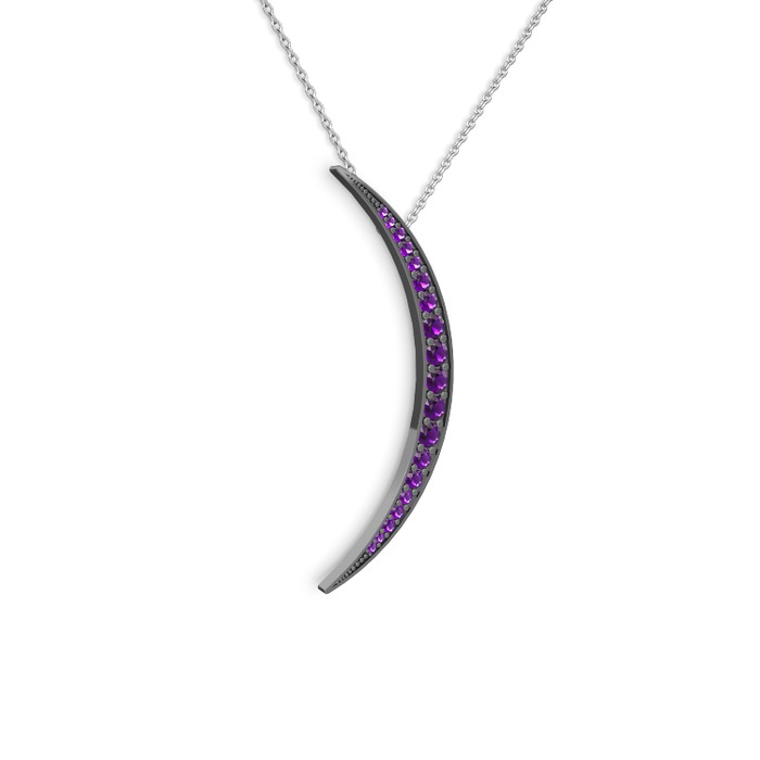 Ametist 925 ayar siyah rodyum kaplama gümüş kolye (40 cm gümüş rolo zincir)