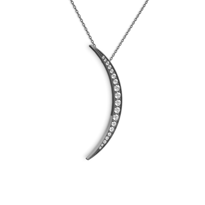 Beyaz zirkon 925 ayar siyah rodyum kaplama gümüş kolye (40 cm gümüş rolo zincir)