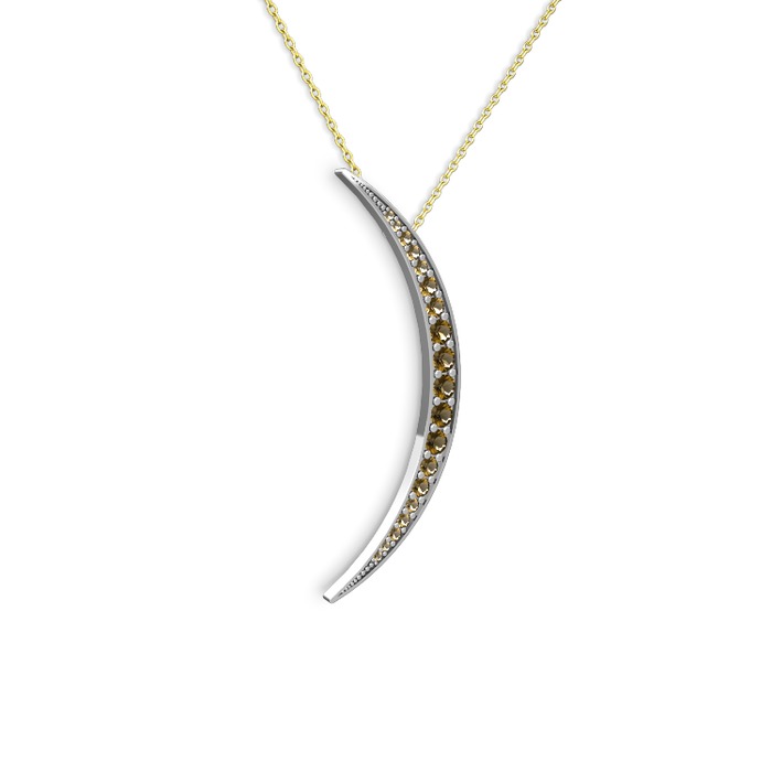 Dumanlı kuvars 18 ayar beyaz altın kolye (40 cm gümüş rolo zincir)