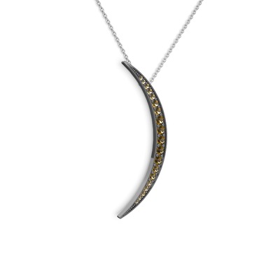 Dumanlı kuvars 925 ayar siyah rodyum kaplama gümüş kolye (40 cm beyaz altın rolo zincir)