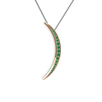 Ay Kolye - Kök zümrüt 14 ayar rose altın kolye (40 cm gümüş rolo zincir)