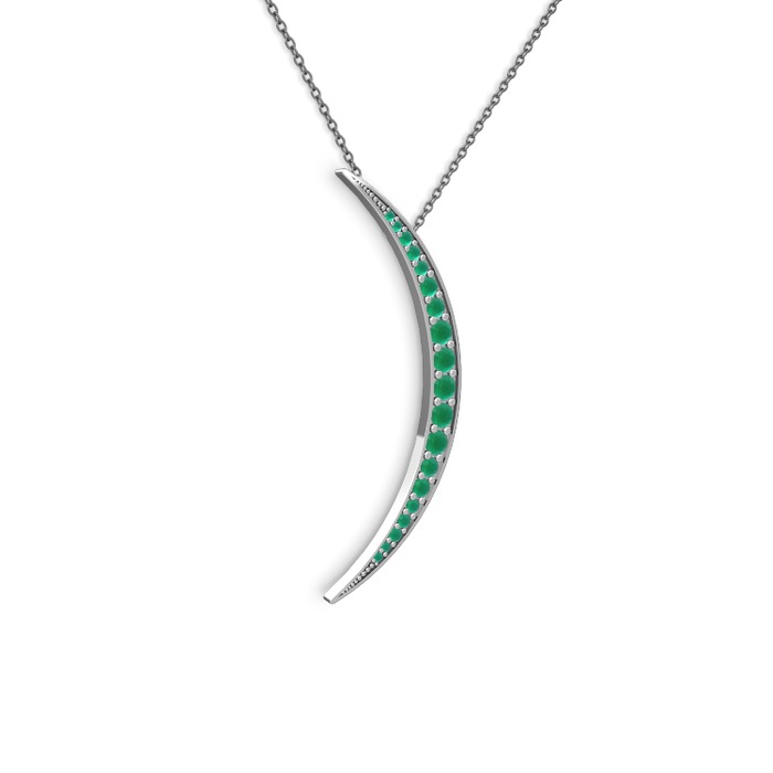 Kök zümrüt 8 ayar beyaz altın kolye (40 cm gümüş rolo zincir)